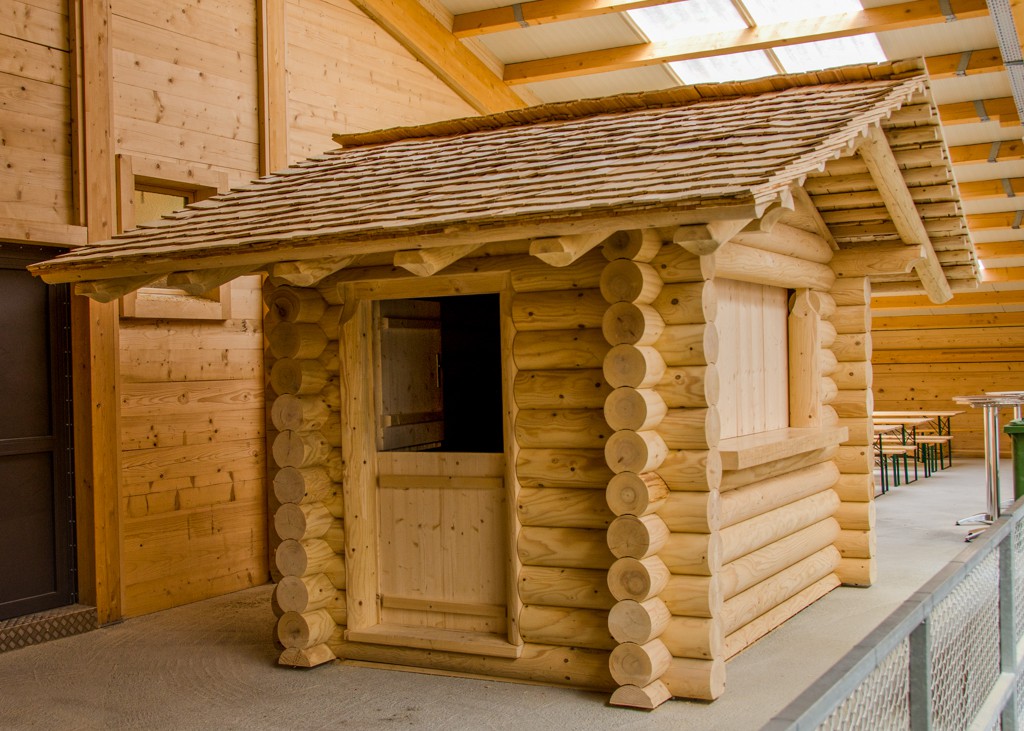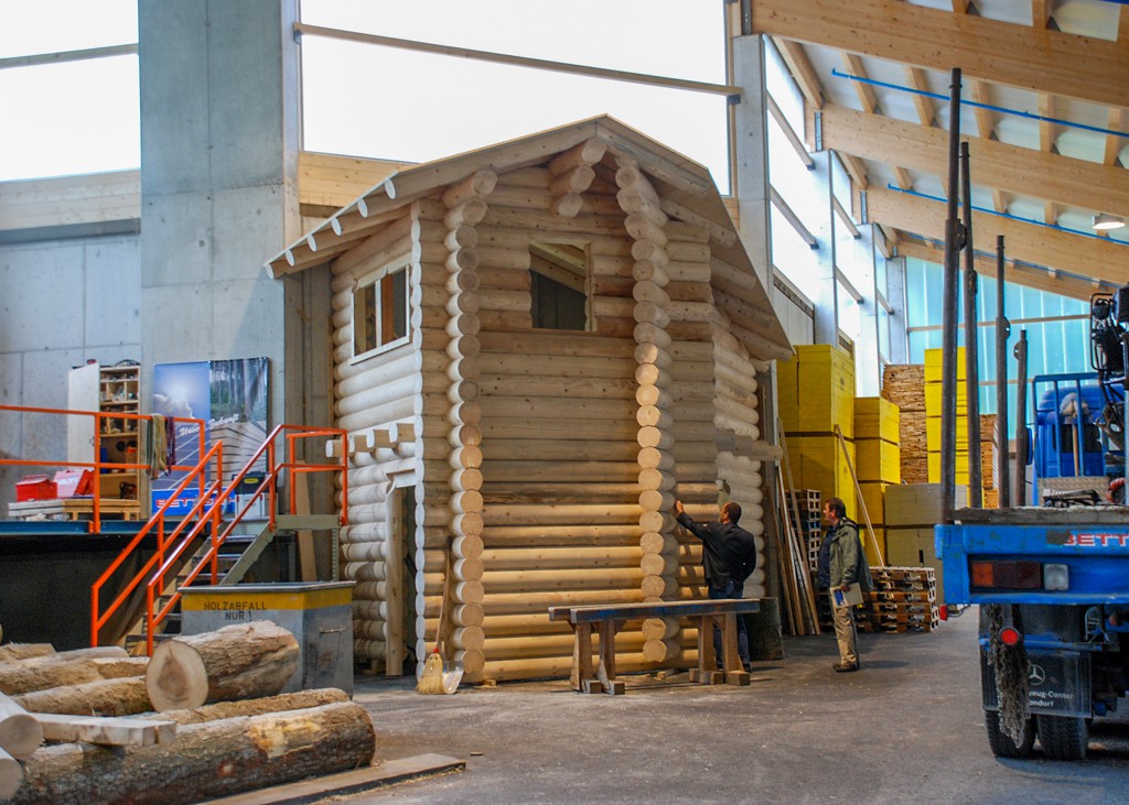 In unserer modernen Montagehalle stellen wir Rundholz-Blockhäuser nach Kundenwunsch her.